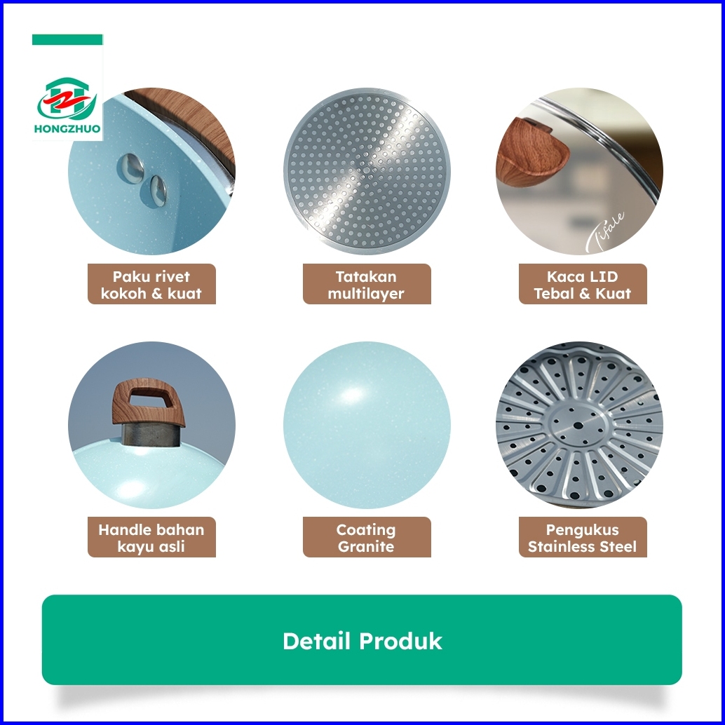 Tifale By Hongzhuo 2in1 Wokpan 32cm Glass Lid Granite Steamer Non Stick Alat Masak Wok Dengan Panci Kukus Granite Anti L