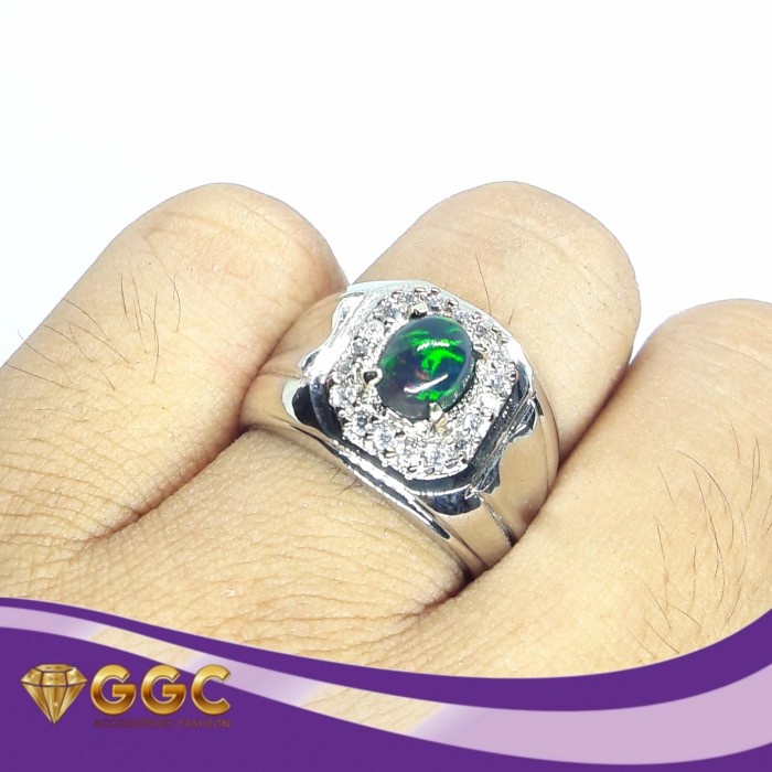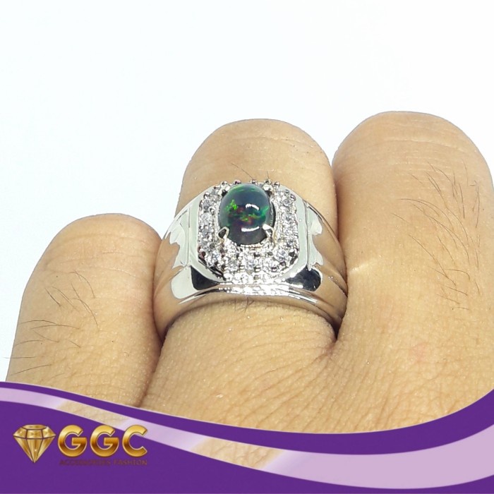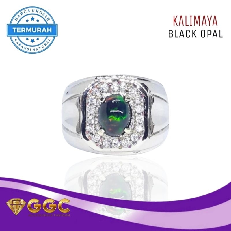 Cincin Batu Natural Black Opal Kalimaya Size Kantoran