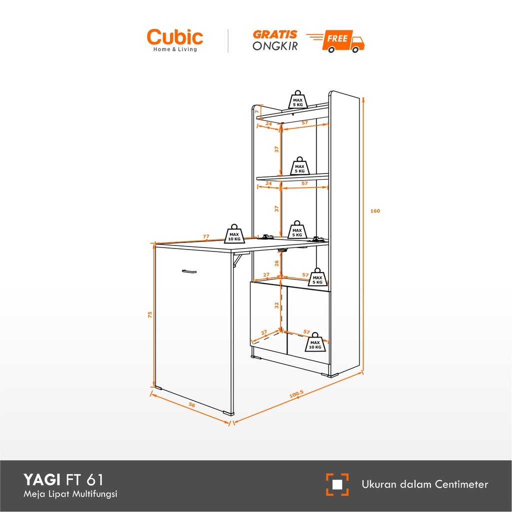 mall inline badgeCubic Meja Lipat Dinding Minimalis / Folding Table / YAGI FT 61