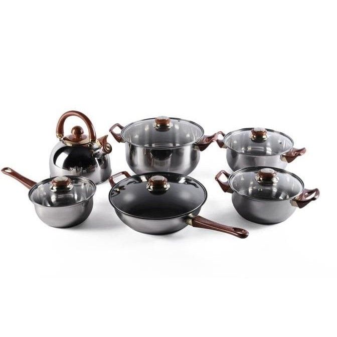 Panci Set Anti Lengket Stainless Tutup Kaca Wajan Teko Wok Frypan Penggorengan Teflon Paket Panci Set 5 Pcs Murah
