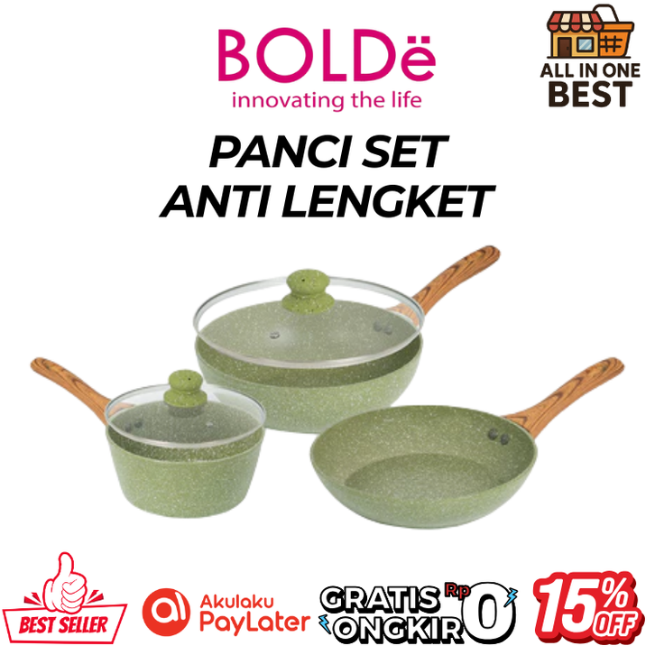 Panci Set Anti Lengket Bolde Original Panci Organic Pan Set 5pcs Lapisan Ceramic Anti Bakteri Premium Best Seller
