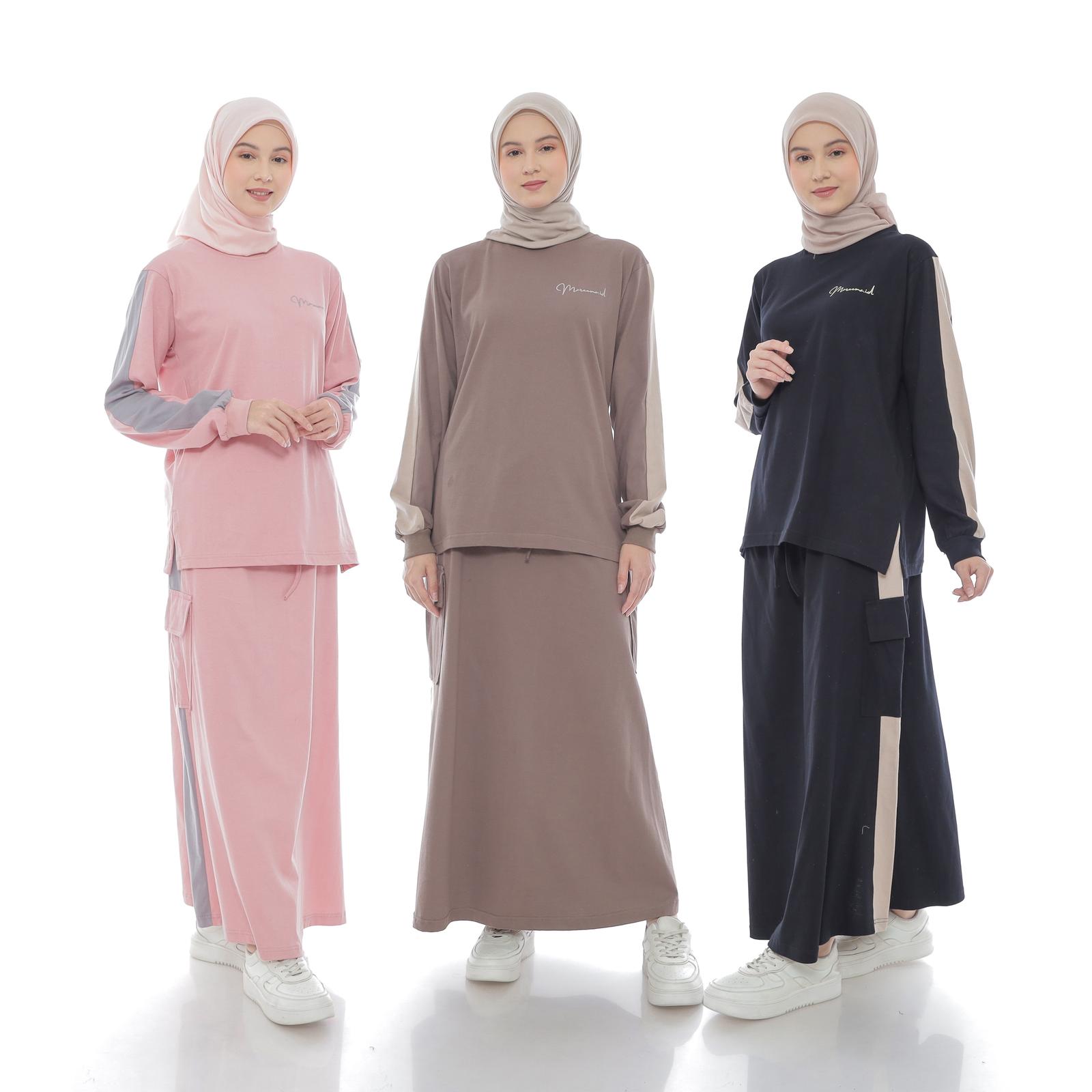Setelan Rok Atasan Wanita Muslim Panjang Terbaru Kekinian Casual Daily Wear Combed