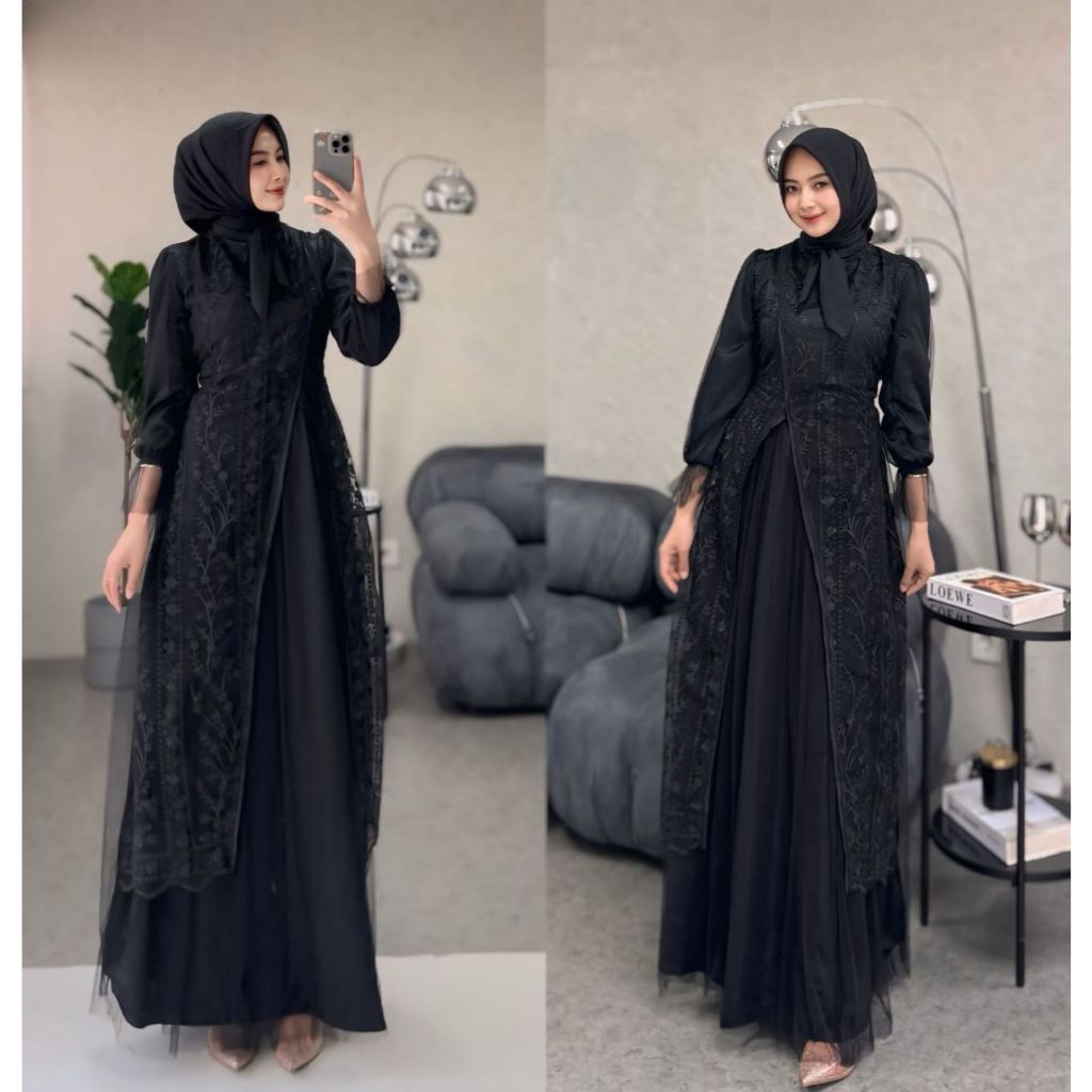 Dress Silk Kombinasi Tile Garden Premium Warna Burgundy Gamis Brukat Tile Pesta Wanita Mewah