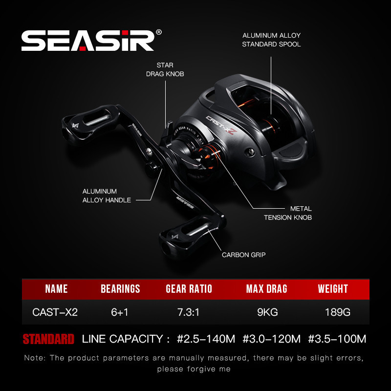 [TANPA ONGKIR] [OFFICIAL] SEASIR CAST X2 Reel BC Baitcasting Reel Pancing, 1 Spool Aluminium, Ceramic Bearings 6+1BB, R