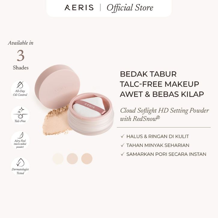 Bedak Tabur Loose Powder Aeris Beauté Cloud Softlight HD Setting with RedSnow Flower Oil Control Tahan Lama