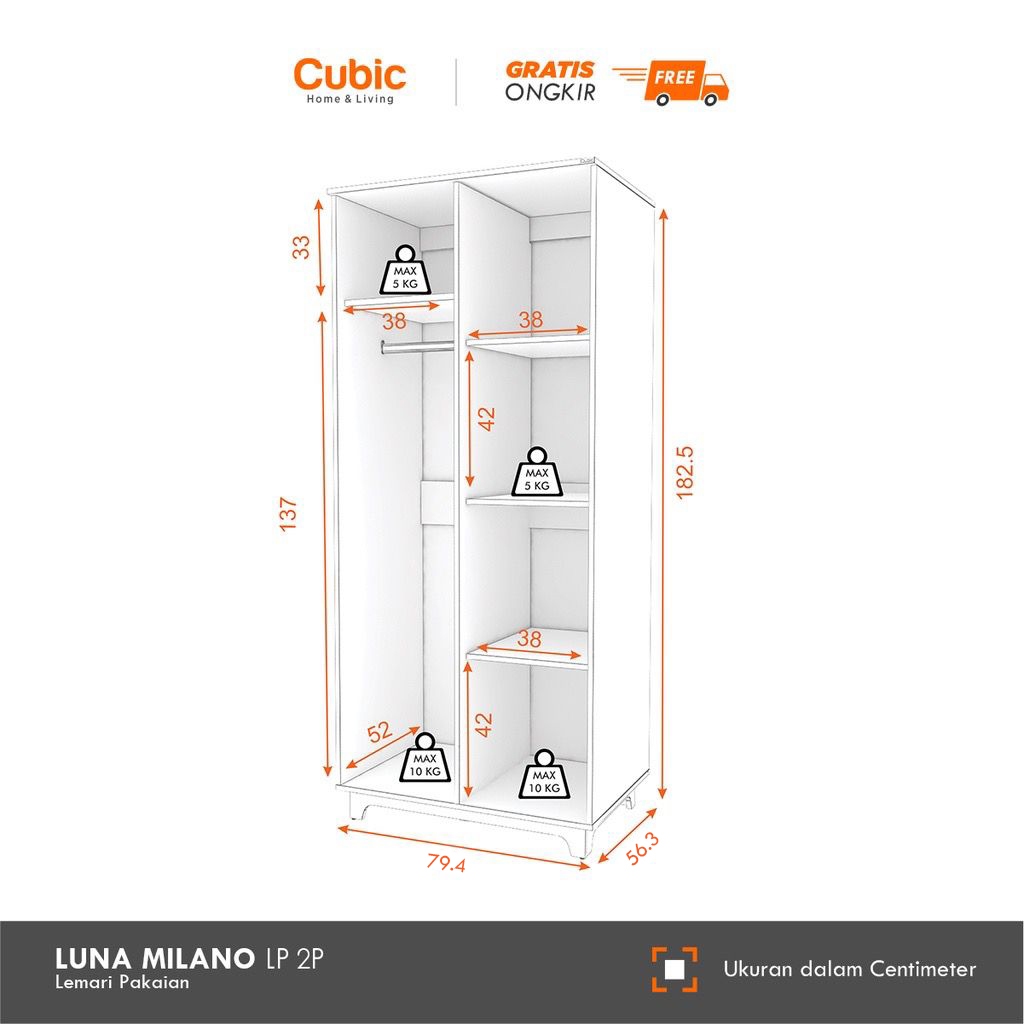 Lemari Pakaian Minimalis / Wardrobe Baju 2 Pintu / LUNA MILANO LP 2P