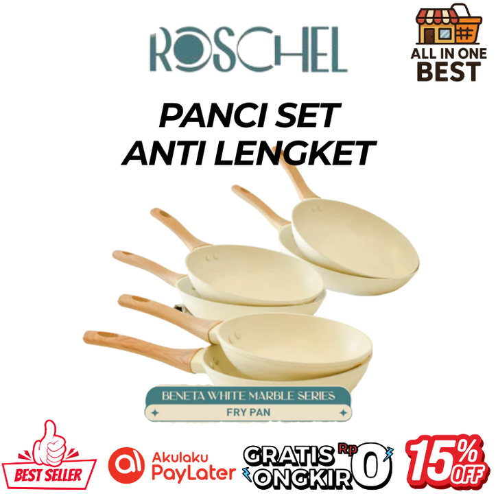 Panci Set Anti Lengket Original Roschel Beneta White Marble Coating Non Stick Ukuran 18 20 22 24 2 28 cm Best Seller