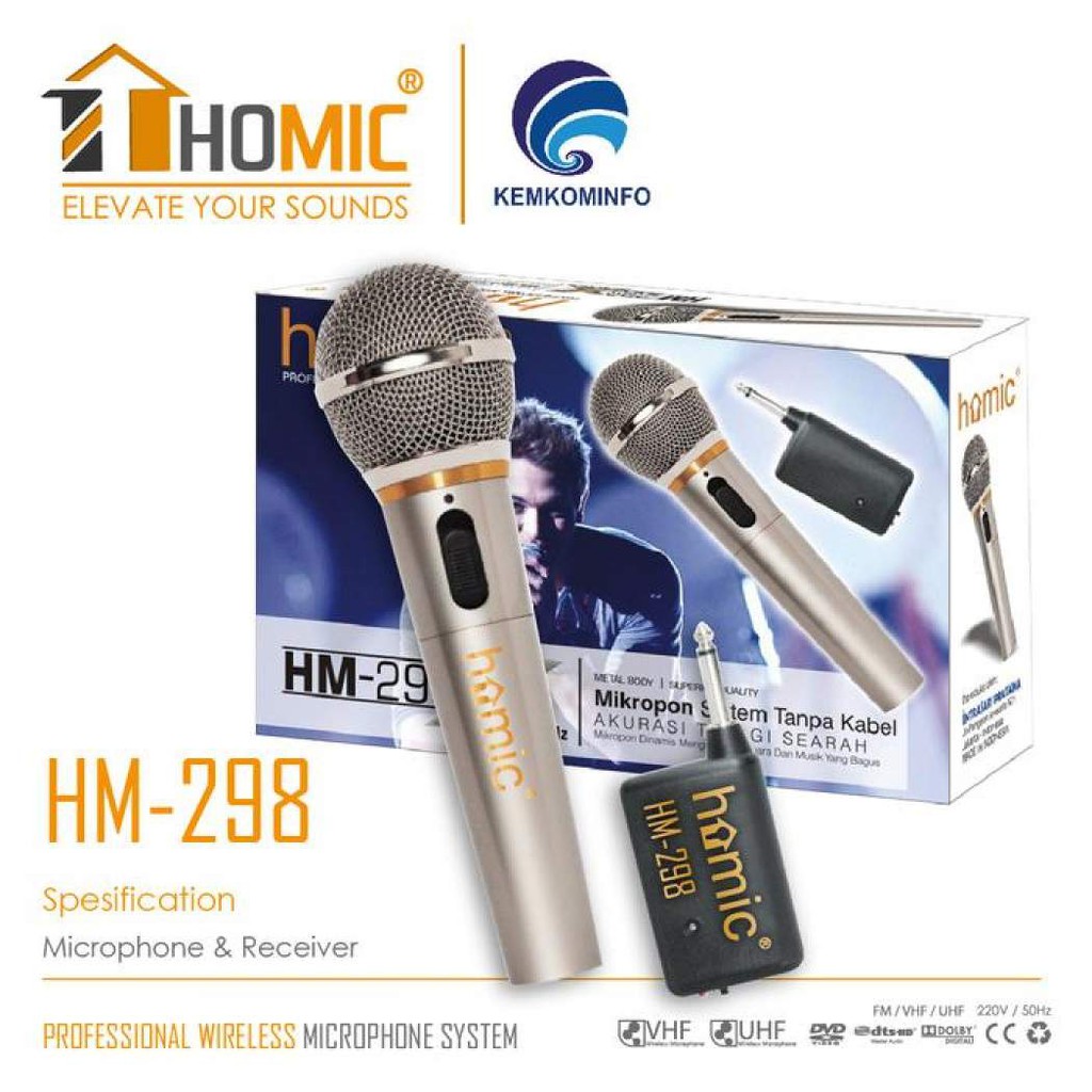 MICROPHONE WIRELESS / MICROPHONE BLUETOOTH / HOMIC MICROPHONE KARAOKE MIC SINGLE WIRELESS HM-298