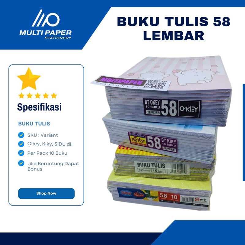 Buku Tulis Isi 58 Lembar Berbagai Merk ( Per Pack 10 Buku )