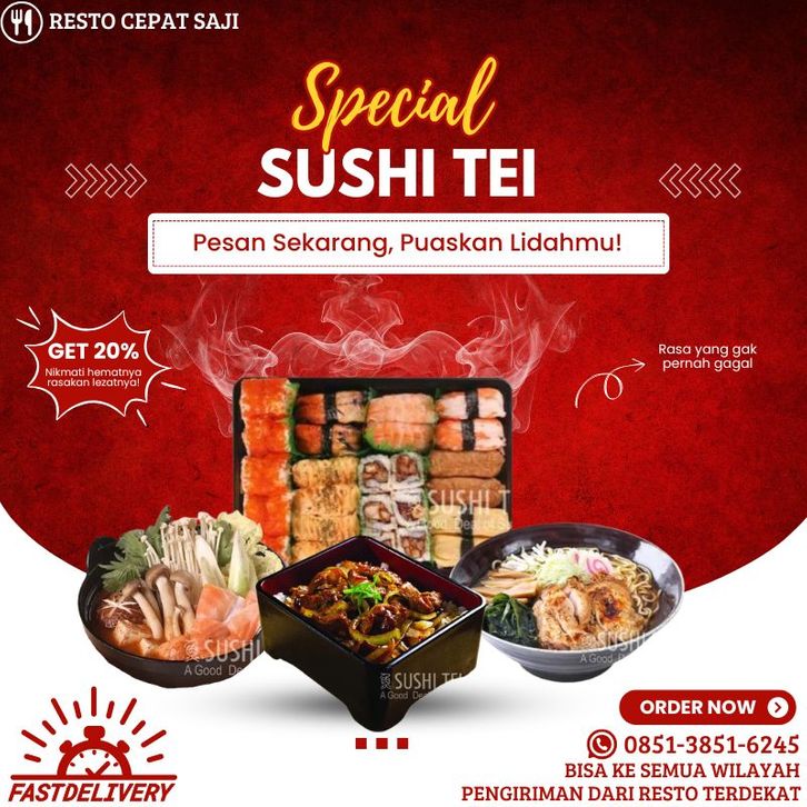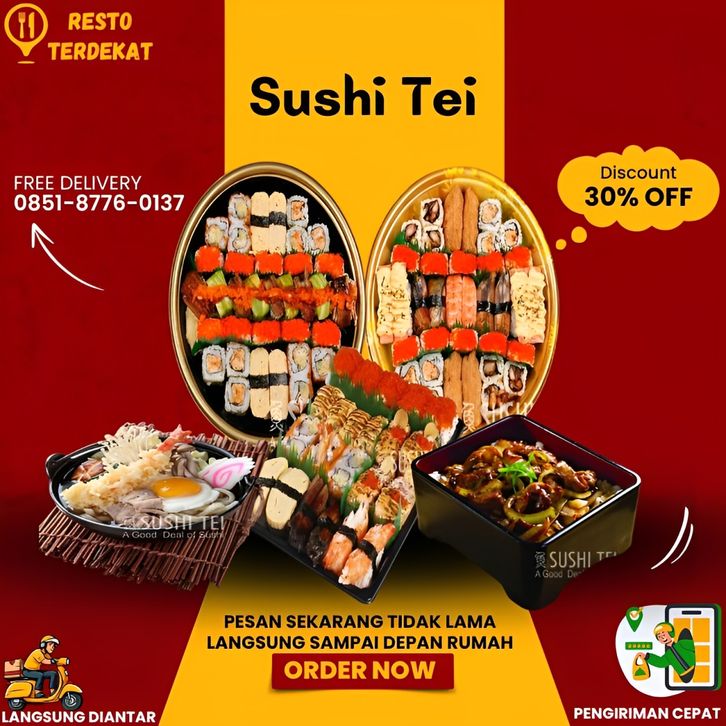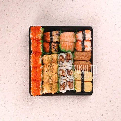 Chicken Mabo Don, Tsukune Cheese, Kakiage Don, Tori Cheese Don, Teriyaki Beef Don, Ankake Ramen, Karameru Yuzu Tea, Karameru Milk Tea, Beef Katsu Roll, Baked Salmon Mentai Rice, Salmon Fried Roll, Cheesegake Salmon Roll, Teriyaki Beef Roll, Lava Roll, Ultimate Jumbo Dragon Roll, Saburo (35 Pcs), Shiro (36 Pcs), Rokuro (30 Pcs), Shichiro (30 Pcs), Hachiro (30 Pcs), Goro (10 Pcs), Gekkikara Cheese Beef Teriyaki Don, Gekkikara Salmon Mentaiyaki, Salmon Gyubara, Gekkikara Salmon Roll, Salmon Kabayaki Roll, Spicy Salmon Head Nabe, Spicy Yasai Misoshiru, Fish Roll, Saikoro Steak, Spicy Miso Ramen, Spicy Salmon Belly Misoshiru, Salmon Belly Misoshiru, Takoyaki Cheese, Takoyaki, Dobinmushi, Chawanmushi, Chuka Kurage, Tamagoyaki, Salmon Karamayo Tamago, Chuka Iidako, Fried Salmon Skin, Edamame, Kani Mayo, Chuka Chinmi, Chuka Wakame, Nori Tempura, Misoshiru, Doria Roll, Jumbo Dragon Roll, Tuna Salad Crispy Mentai, Salmon Cheese Roll, Sushi Mentai Moriawase (5 Pcs), Aburi Salmon Roll, Salmon Oyako Roll, Gyuniku Tamago Roll, Negitoro Maki Fried, Stamina Roll, Crunchy Lobster Roll, Dynamite Roll, Fuji Roll, Volcano Roll, Salmon Tanuki Roll, Special Salmon Cheese Sushi, Salmon Mentai Sushi, Kanimayo Tobikko Maki, California Maki, Kani Mentai Mayo Roll, Crispy Cheese Roll, Baked Salmon Maki, Karaage Roll, Spicy Crispy Roll, Salmon Melted Cheese Roll, Salmon Crispy Aburi, Ebi Mentai Sushi, Inari Sushi, Tamago Sushi, Ebi Sushi, Kani Mentai Sushi, Inari Tuna Salad, Inari Kanimayo, Ebiten Floss Maki, Tamago Maki, Ebi Tempura Maki, Kanikama Maki, Tuna Salad Maki, Kani Tamago Maki, Tempura Maki Ebikko, Kappa Maki, Salmon Mentai Canape, Tori Tempura Teriyaki Roll, Crispy Mentai Roll, Aburi Salmon Belly Sushi, Gekkikara Cheese Chicken Karaage, Chicken Karaage, Chicken Nanbanage, Tori Teba Cheese, Spicy Tori Teba, Agedashi Tofu, Shishamo Karaage, Gyuniku Cheese Maki, Ebi Tempura, Yasai Tempura, Tempura Moriawase, Salmon Ball Age, Gekkikara Cheese Saikoro Steak, Shitake Gyubara, Sausage Gyubara, Gyuniku Cheese Teriyaki, Tori Gyoza, Spicy Haruyaki, Udon Ni Cheese, Salmon Teriyaki, Salmon Shioyaki, Salmon Mentaiyaki, Jumbo Yakitori, Nira Moyashi, Saba Shioyaki, Saba Teriyaki, Shishamo, Teriyaki Chicken, Yasai Itame, Spicy Beef Nabe, Sushi Tei - Plaza Indonesia : Salmon Cheese Misosh, Gyu Yanagawa, Yasai Mishoshiru, Udon Doria, Gekkikara Tsukemen, Salmon Chasoba, Niku Udon, Kitsune Udon, Shoyu Ramen, Goma Kara Ramen, Tempura Udon, Tsukimi Udon, Curry Udon, Udon, Soba, Tenzaru Soba, Zaru Udon, Chicken Katsu Udon, Nabeyaki Udon, Cha Soba, Spicy Miso Udon, Konyaku Soba, Curry Ramen, Grilled Chicken Udon, Yakisoba, Yakiudon, Beef Teriyaki Mentai Rice, Chicken Karaage Mentai Rice, Salmon Chahan, Salmon Teriyaki Don, Fried Garlic Rice With Chicken, Chicken Katsu JuYakiniku Ju, Curry Rice, Yakiniku Ju, Yakitori Ju, Gyu Hitsumabushi, Tori Karaage Don, Chicken Karaage Salad, Wakame Salad, Chicken Teriyaki Salad, Mayonnaise, Spicy Mayonnaise