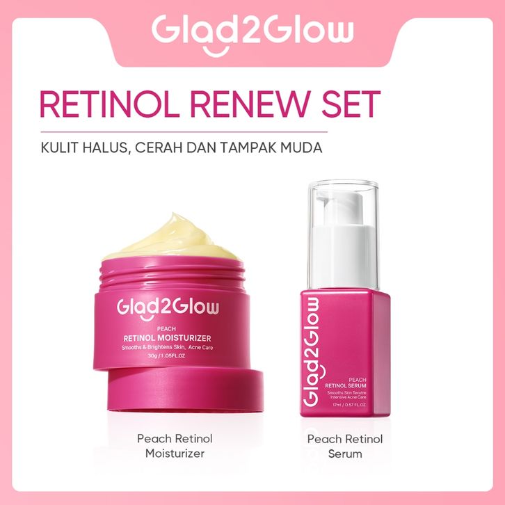 Paket Skincare Glad2glow Retinol Moisturizer Glad2Glow Peach Retinol Moisturizer 30g Paket Glad2Glow Retinol Serum