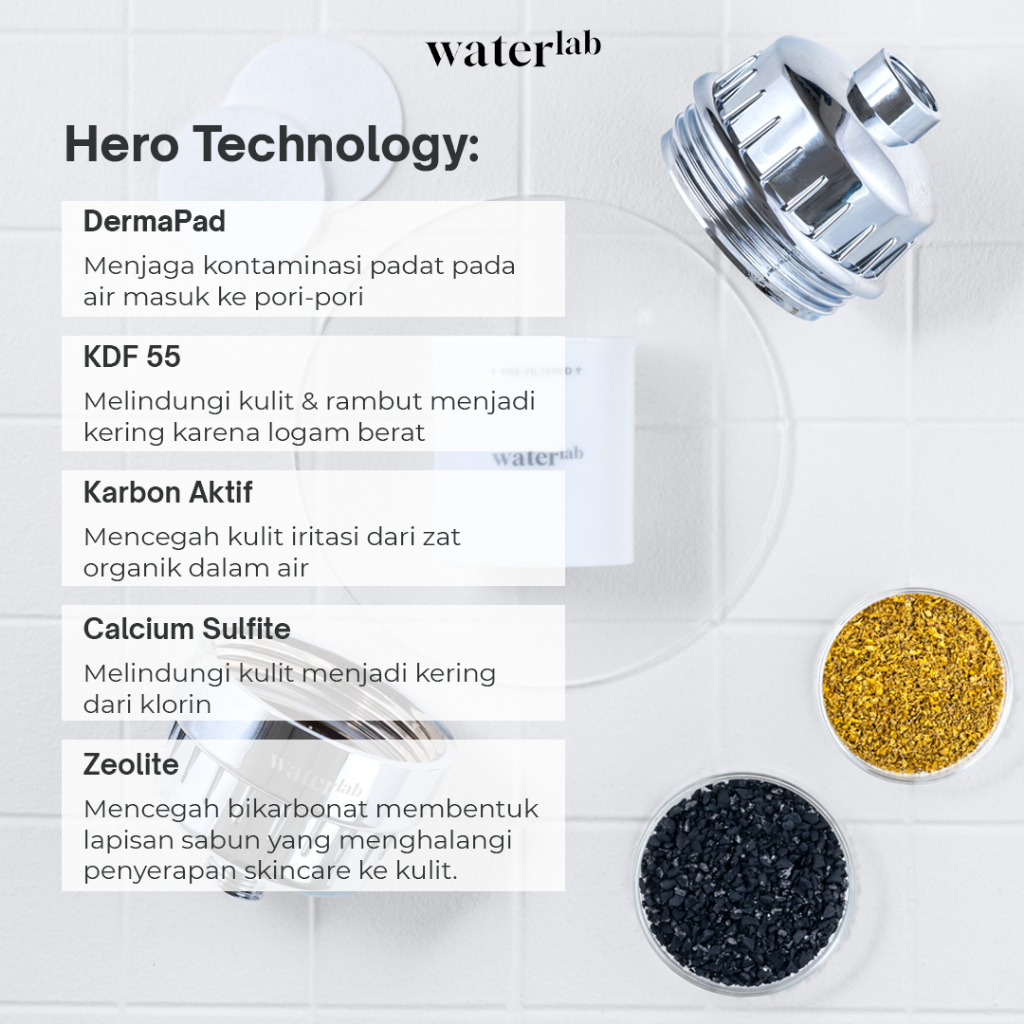 Waterlab Skincare Shower Filter Set Filter Air untuk Skin Acne Kulit Kering Bantu Kurangi Jerawat Iritasi Melembabkan Ku