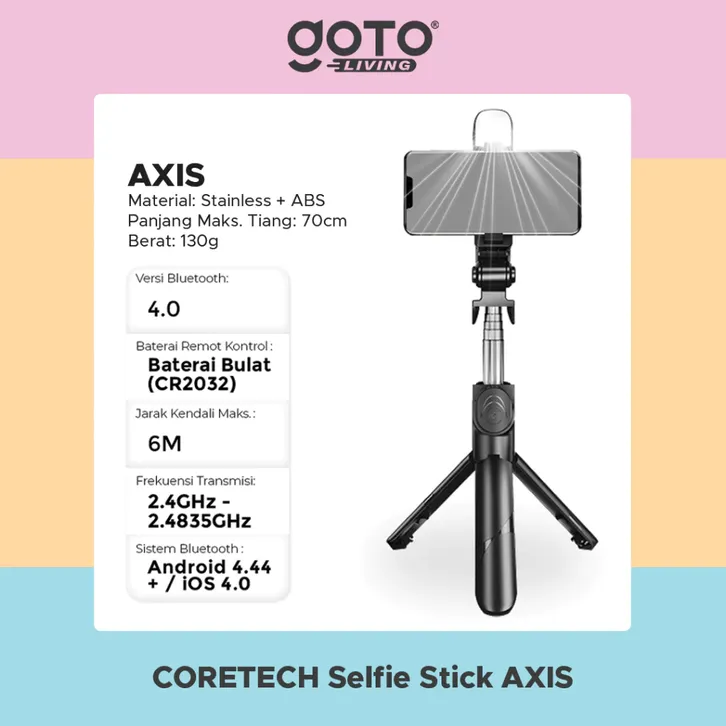 Coretech Axis Tripod Tongsis Bluetooth Remot Selfie Stick LED Flash