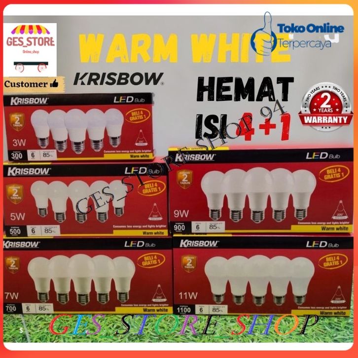 Bohlam Bohlam Lampu Lampu Bohlam LED KRISBOW 3/5/7/9/11 Watt/ Putih & Kuning/Lampu bohlam/bulb/Set Lampu/lampu serbagun