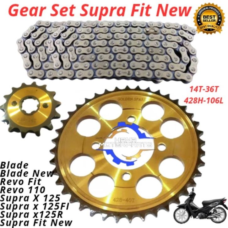 GEAR PAKET GIR SET SUPRA FIT NEW 14T - 36T 428H - 106L PLATINUM bajja 6old RANTAI BELAKANG DEPAN