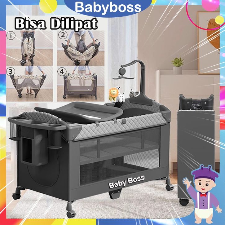 Tempat Tidur Bayi Box Bayi Tempat Tidur Bayi Lipat Multifungsi Kasur Bayi Set Kelambu Ranjang Bayi Goyang