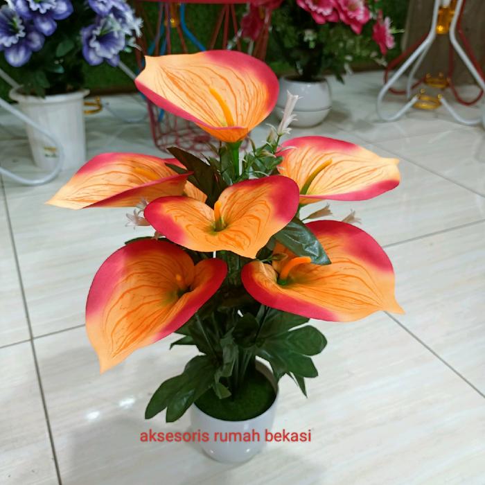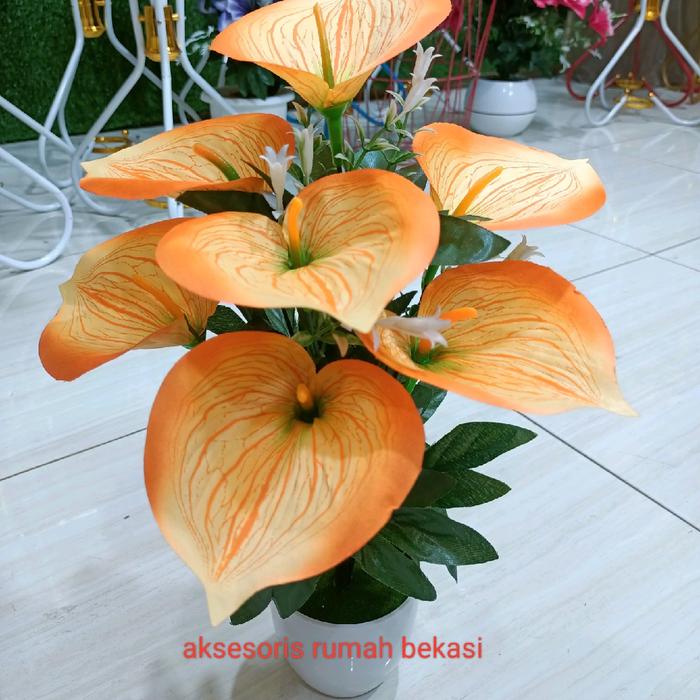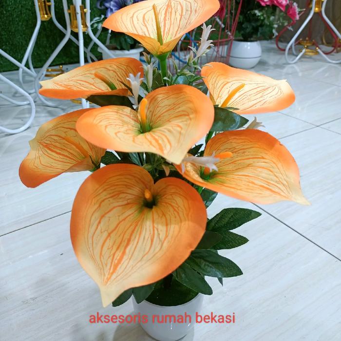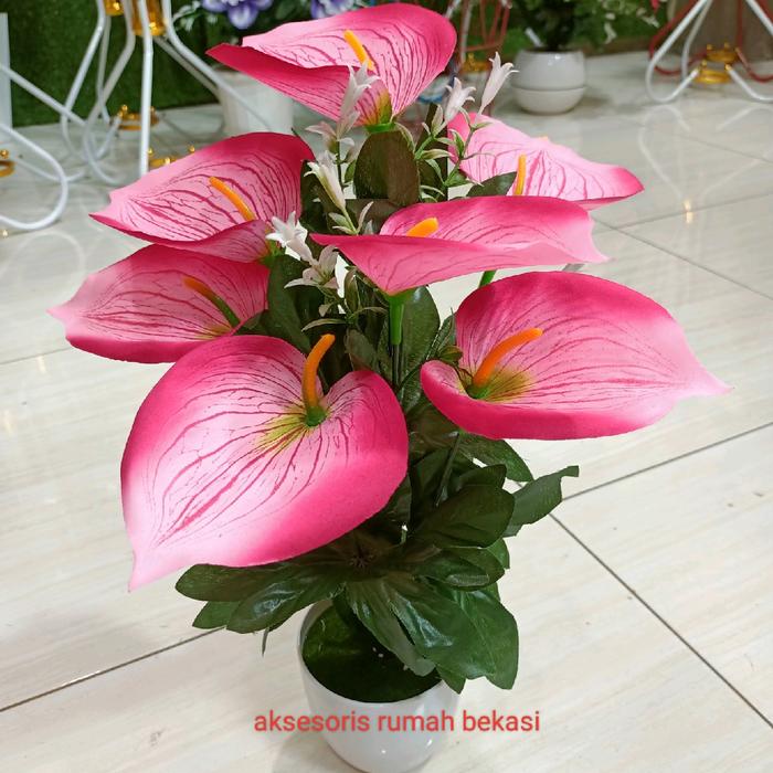 Bunga anthurium Lilly isi 7 kuntum dengan pot bulat lumut Plastik