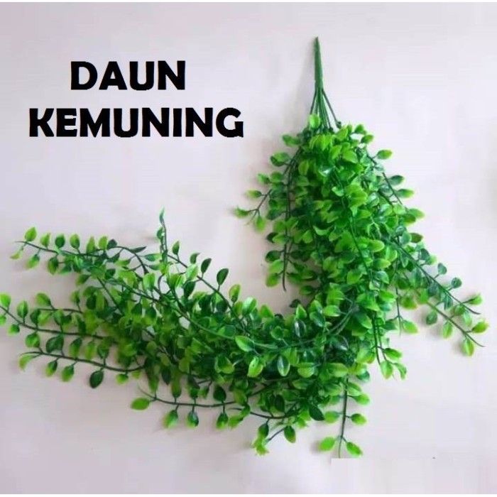Daun Juntai Plastik Kemuning Kuaci Artificial dan Pot Gantung Putih
