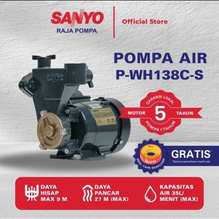 TANPA DP✅GRATIS ONGKIR✅ SANYO Pompa Air Sumur Dangkal Non Otomatis 125W P-WH138C/P-WH137C