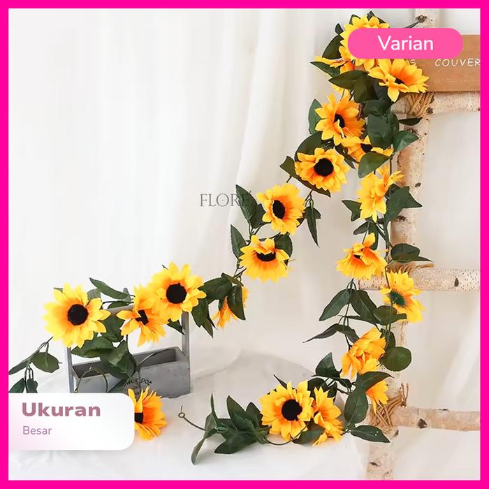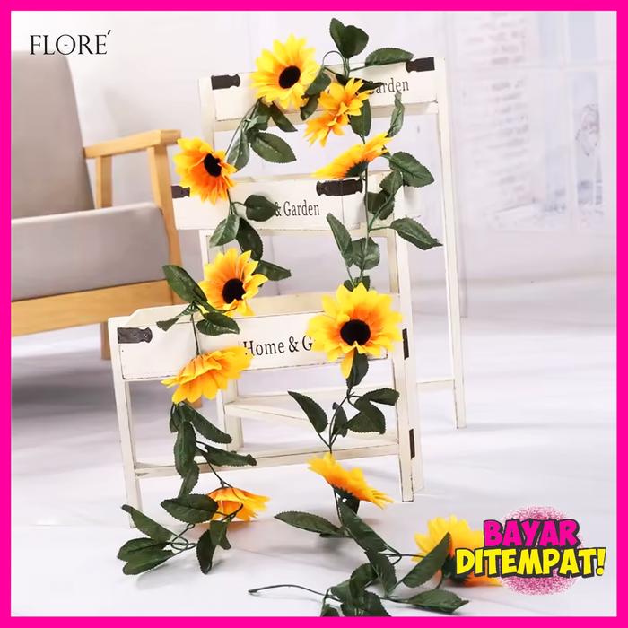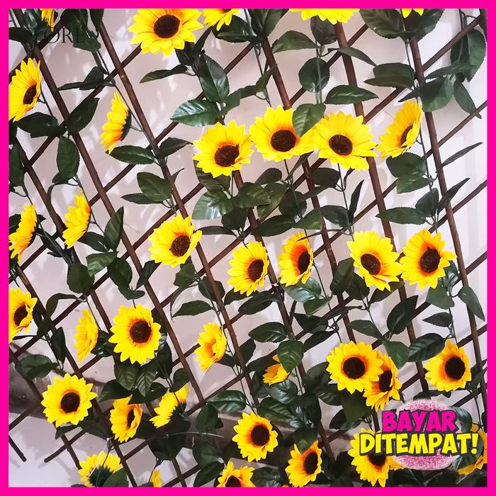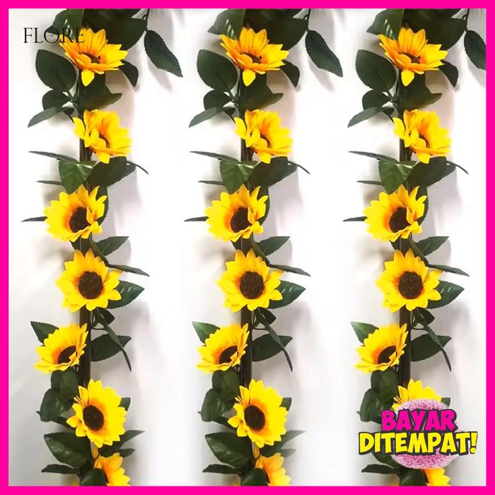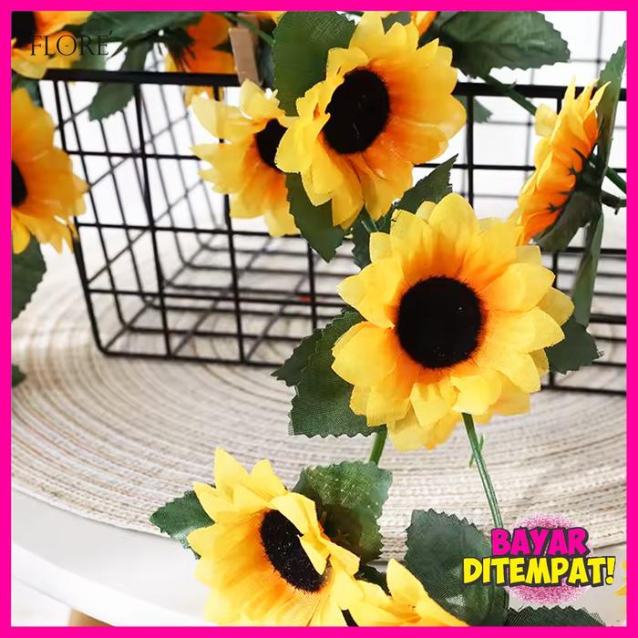 DAUN RAMBAT BUNGA MATAHARI BUNGA PLASTIK BUNGA PALSU PLASTIK DEKORASI PESTA DAUN JUNTAI GANTUNG