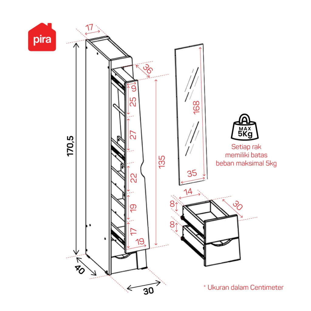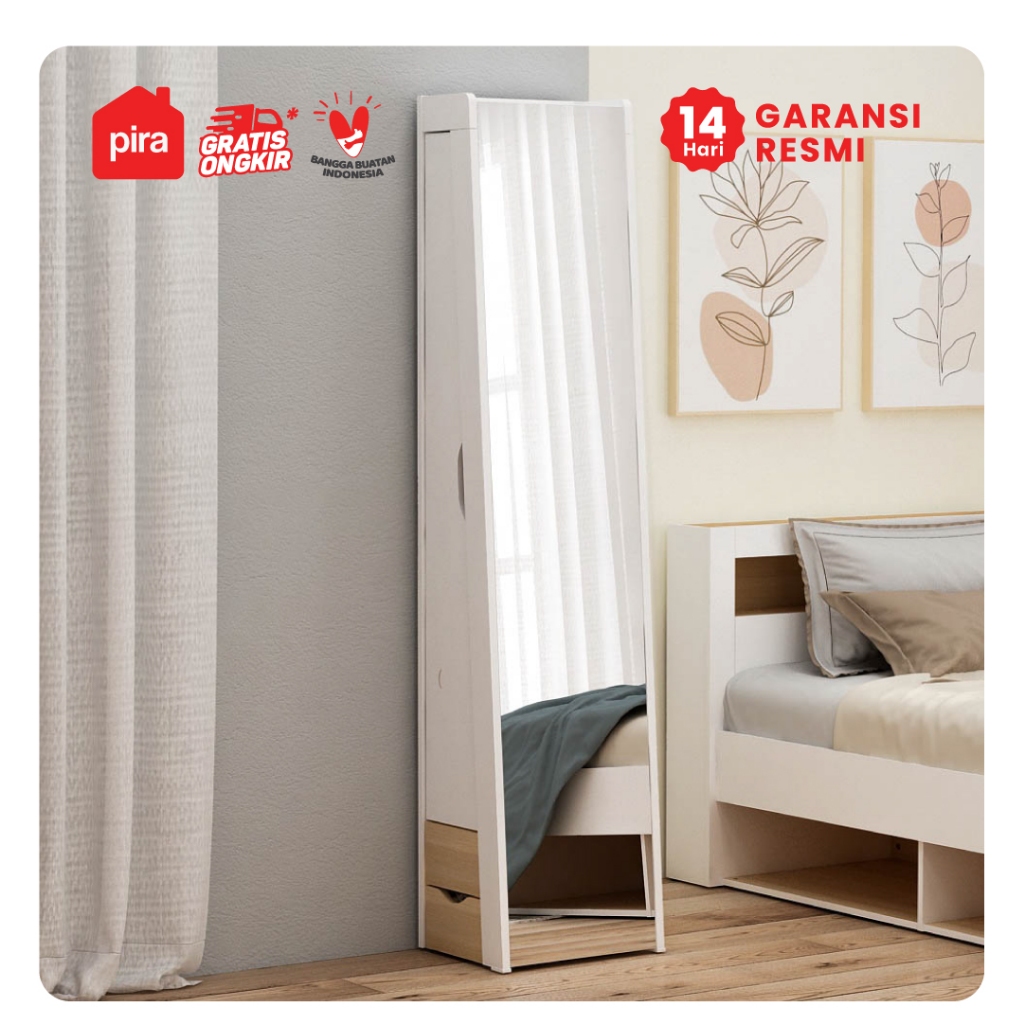 Cermin Berdiri Full Body dengan Laci dan Rak Jilbab / Rak Pakaian