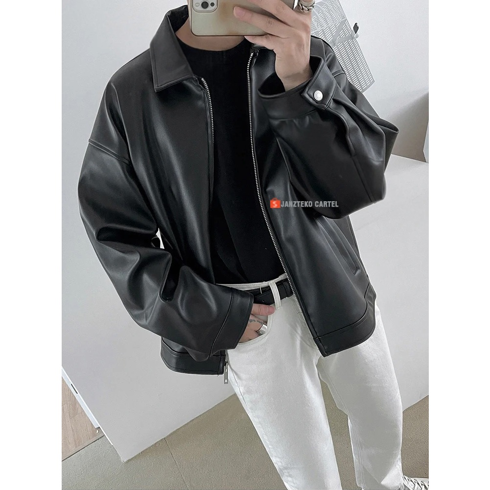 JNK x JORDI - Jaket Pria Classic Style Bahan Semi Kulit Sintetis Viena Oversize PU Leather Jackets Outfit Fashion Casual