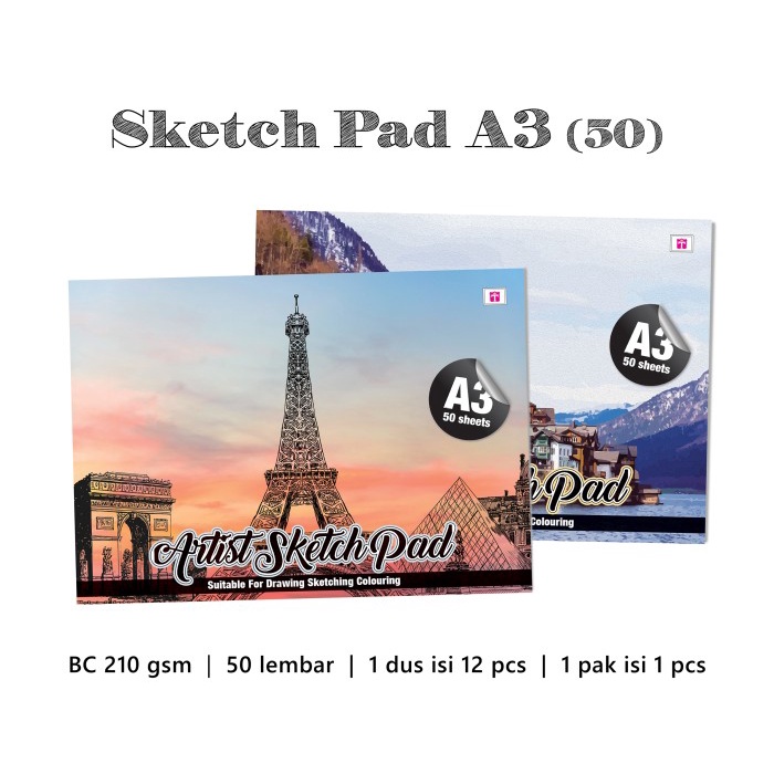 Buku Gambar A3 50 lembar, Buku Sketsa A3 , Sketch Book A3