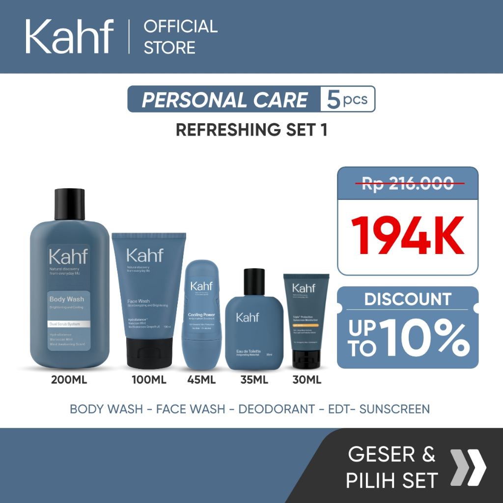Kahf Paket Personal Care Isi 5 (Face Wash + Sunscreen Moisturizer + Body Wash + Deodorant + Eau de Toilette) - Suitable