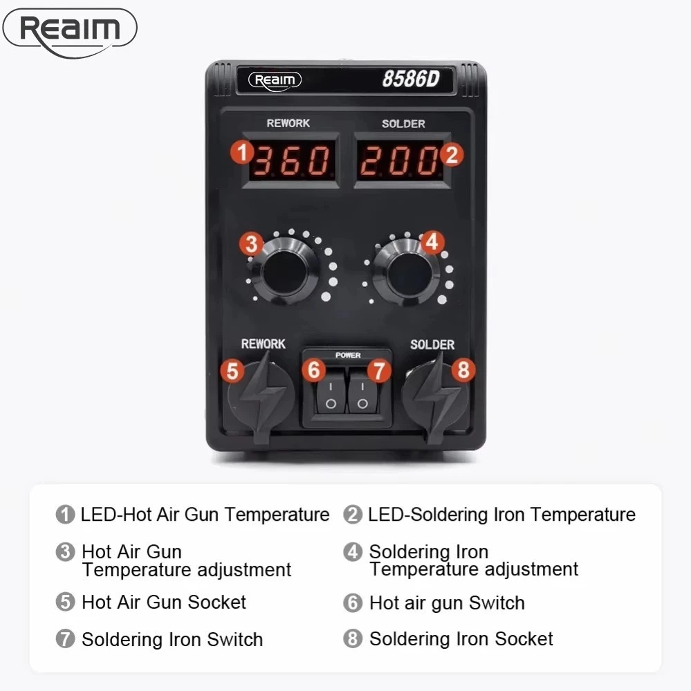 Reaim Soldering Station Soldering iron 2 in 1 Digital Display SMD Ulang Hot Air Solder Blower 8586D ESD Las Pematrian