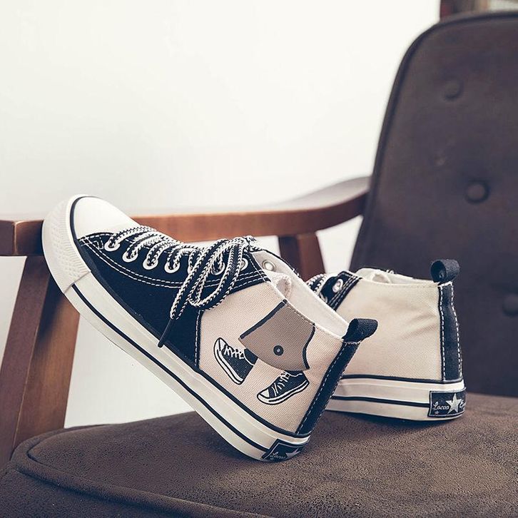 SEPATU TALI WANITA KOREA SNEAKERS KANVAS KEKINIAN MOTIF KAKI HIGH TREND FASHION REMAJA DEWASA KYB01