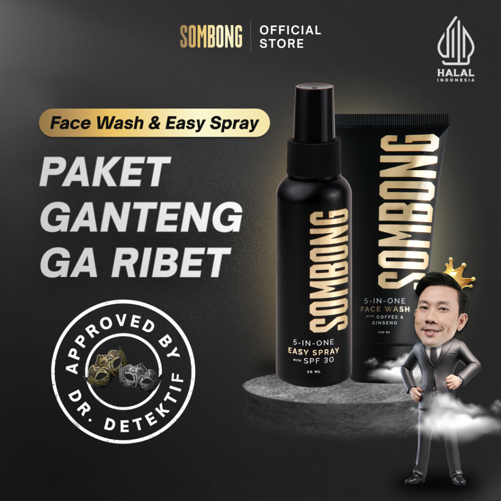 SOMBONG Ganteng Ga Ribet 5-in-1 Face Wash Pria + Sunscreen Spray with SPF 30 Sunscreen Skincare
