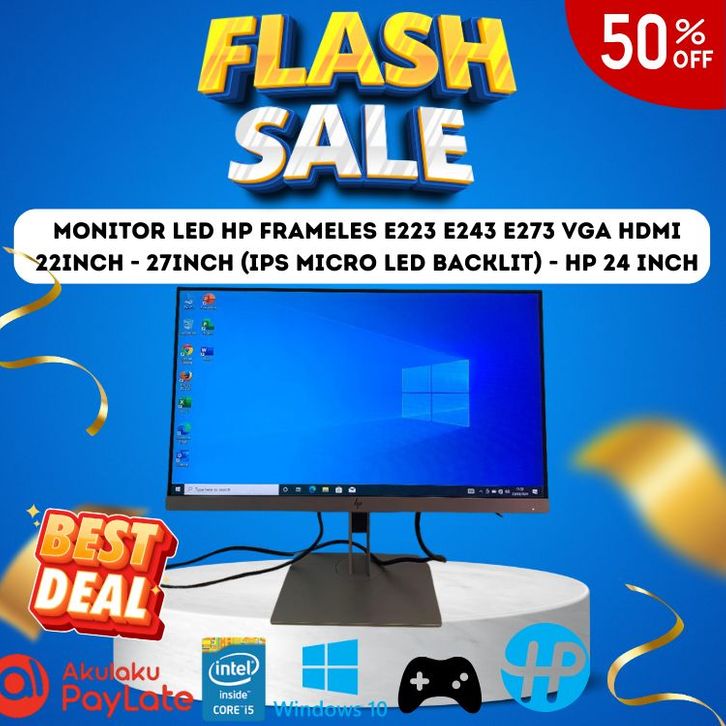 MONITOR LED MURAH HP FRAMELES E223 E243 E273 VGA HDMI 22inch - 27inch (IPS Micro backlit)