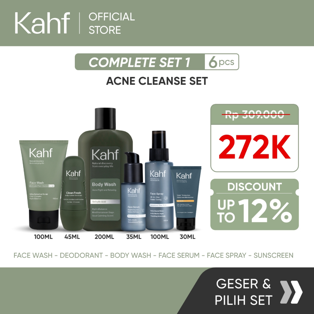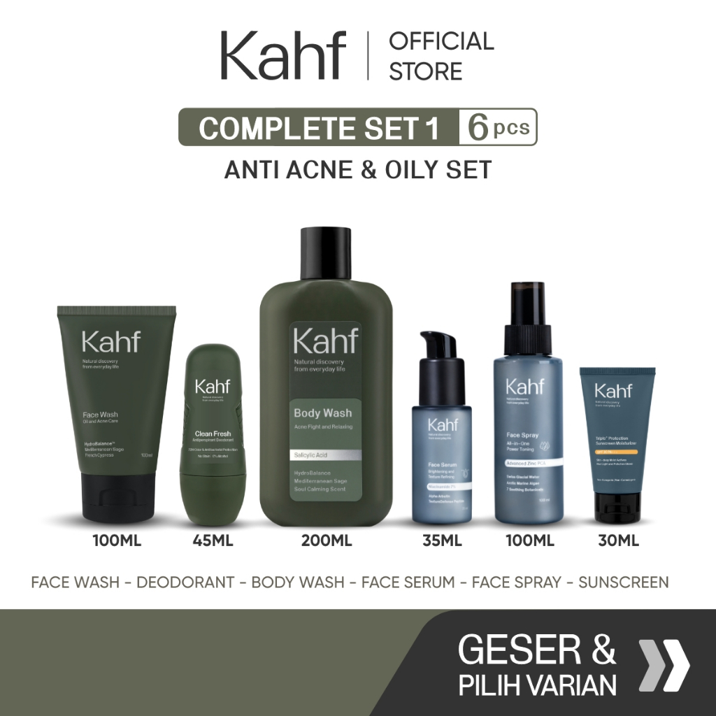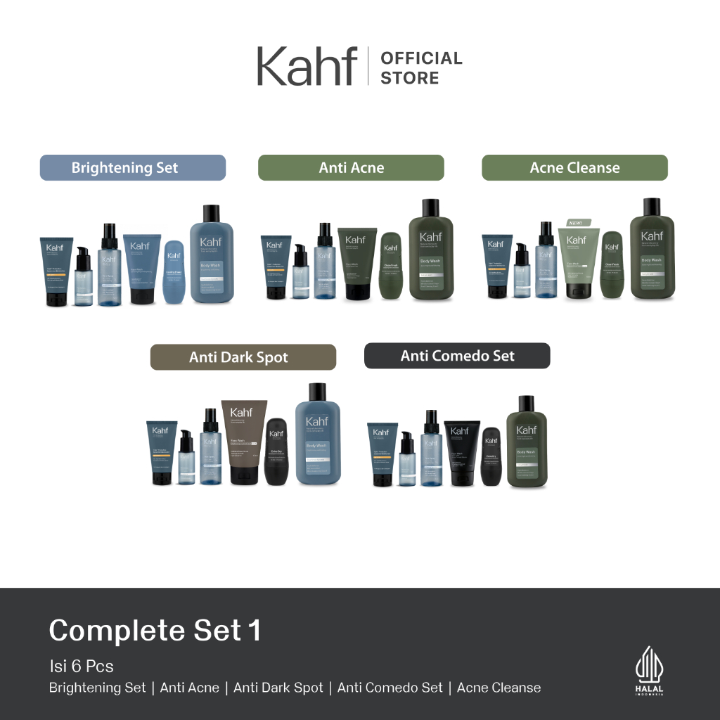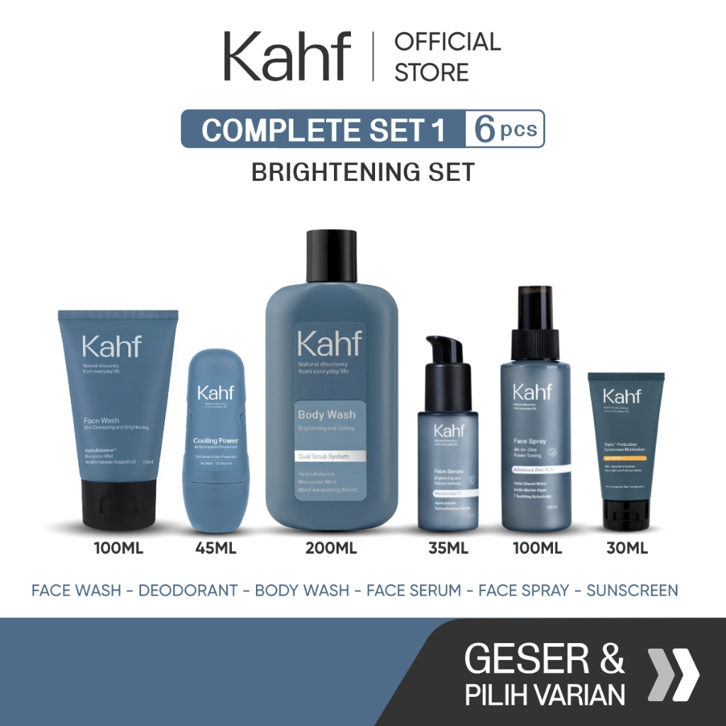 Kahf Paket Complete Set 1 (Face Wash + Toner + Serum + Sunscreen Moisturizer + Body Wash + Deodorant) - Suitable for Dai