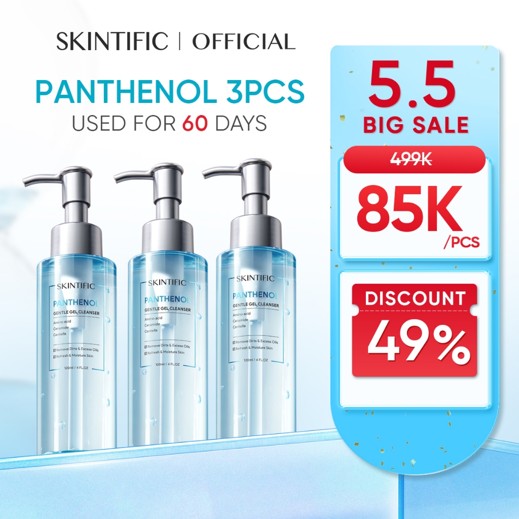 SKINTIFIC - Gentle Gel Cleanser 120ml * 3pcs Panthenol & Centella Asiatica | Oil Control Clean Calming Down and Clear Fa