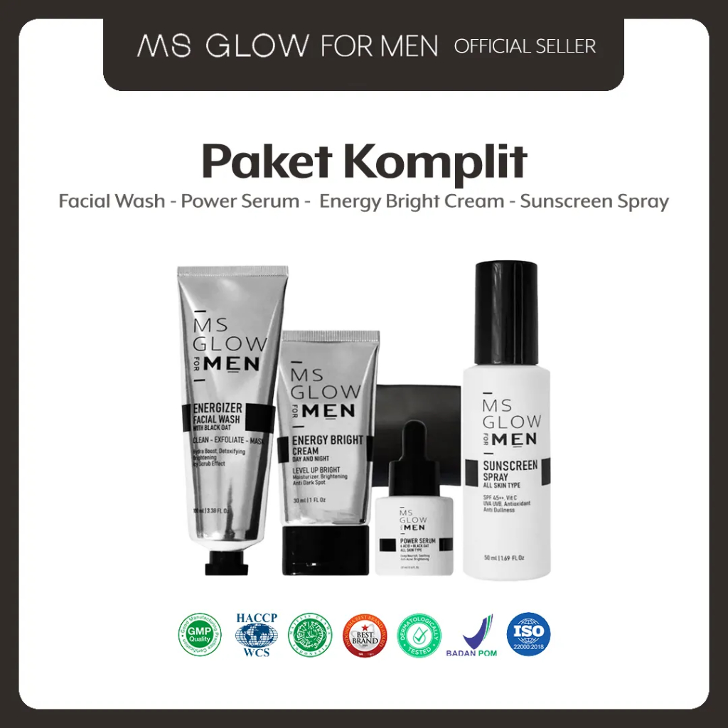 MS Glow for Men Paket Brightening | Acne | Hydrating | Basic | Lengkap isi 3 dan 4 | Ecer Sabun wajah Cuci Muka Krim Fac