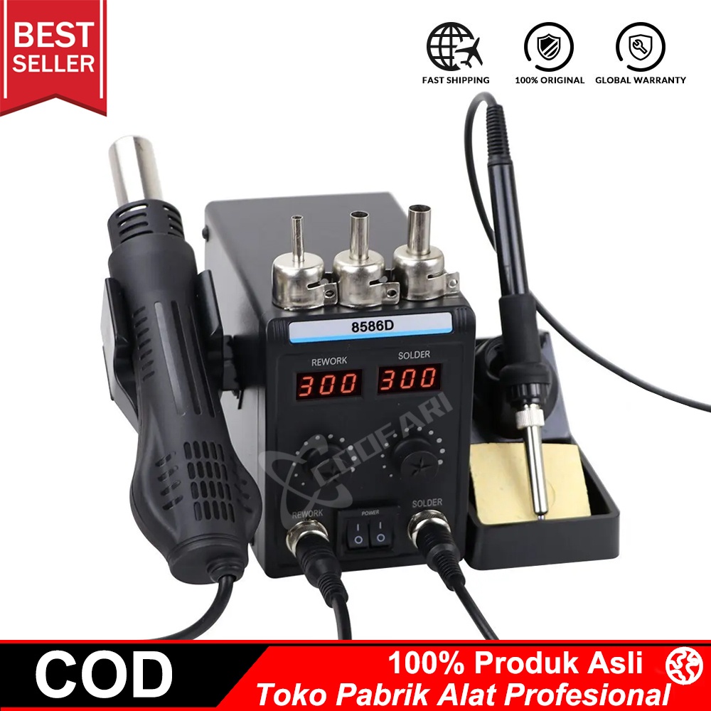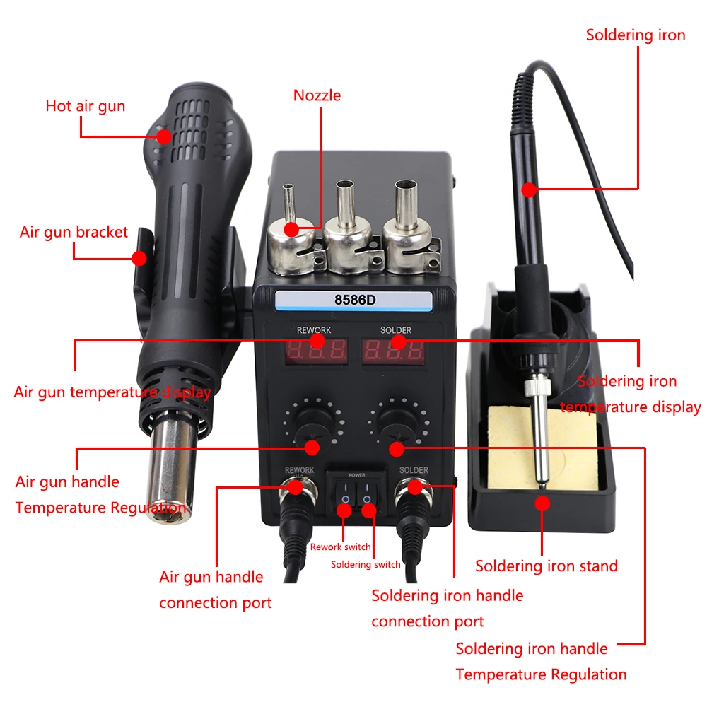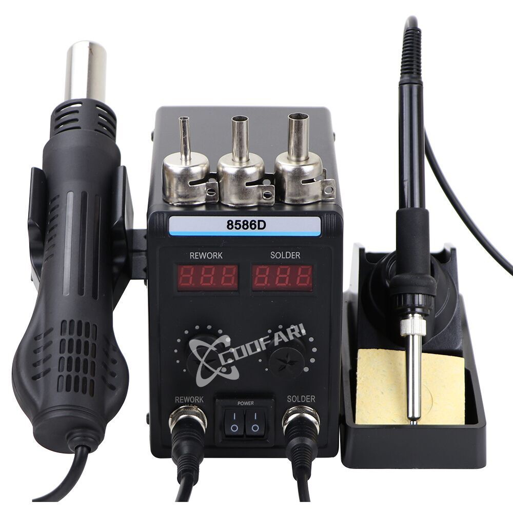 Stasiun Pengelasan 2 IN 1 8586D dengan Alat Panas dan Stasiun Pengelasan dengan 2 Layar Digital 750W Solder Station