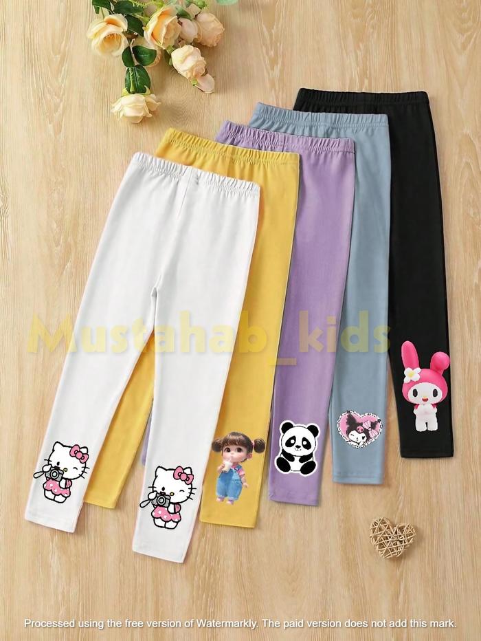 DP 0 5 PCS LEGGING SABLON BAHAN KAOS SPANDEK KARAKTER ANAK PEREMPUAN USIA 110 TAHUN BAWAHAN AN