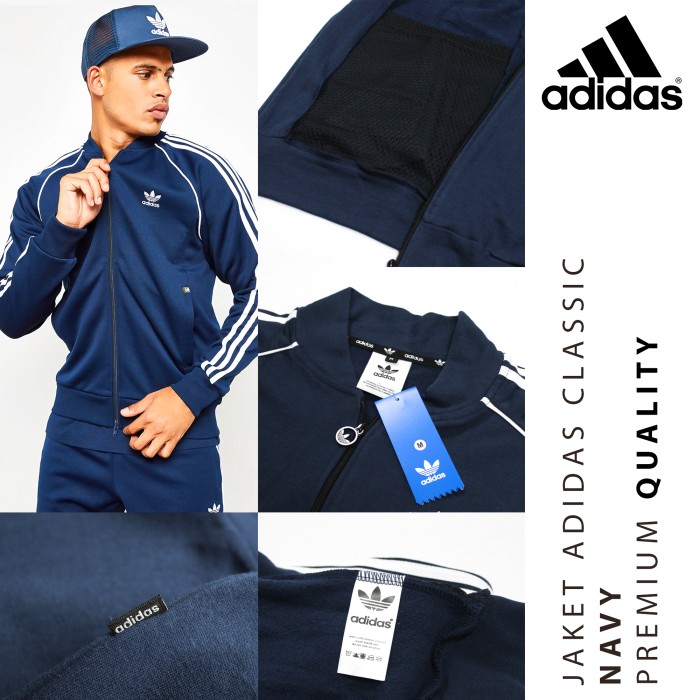 PROMO TERBATAS STELAN JAKET ADIDAS CLASSIC NAVY GRADE ORIGINAL M