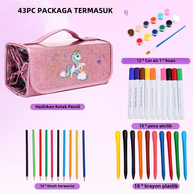 Set alat menggambar 43/50 buah pensil warna, pena cat air, cat menggambar set alat menggambar pensil warna