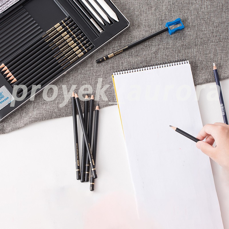 【Flash Sale!!!】Set Pensil Sketsa Nyoni Baru Asli Kotak Besi Tirai Pena Pemula Set Lengkap Alat Lukis Tangan Pena Arang L