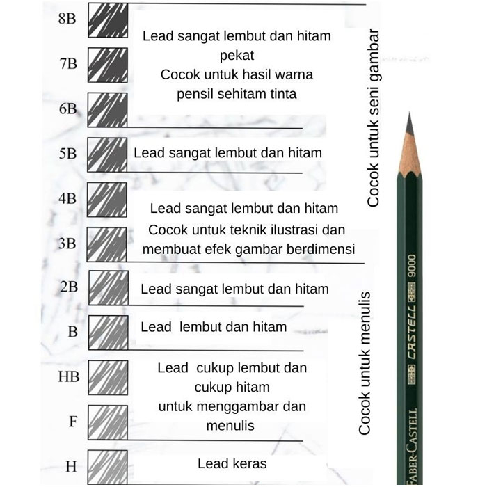 PENSIL, PENCIL CASTELL 9000 B, 2B, 3B, 4B, 5B, 6B, 7B, 8B, HB, H, 2H, 3H, 4H, 5H, 6H FABER CASTELL