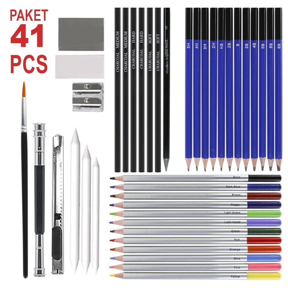 33PCS 41PCS Set Sketch Pensil Pisau Penghapus dan Pensil Gambar untuk Keperluan Sekolah Pencil Drawing Set