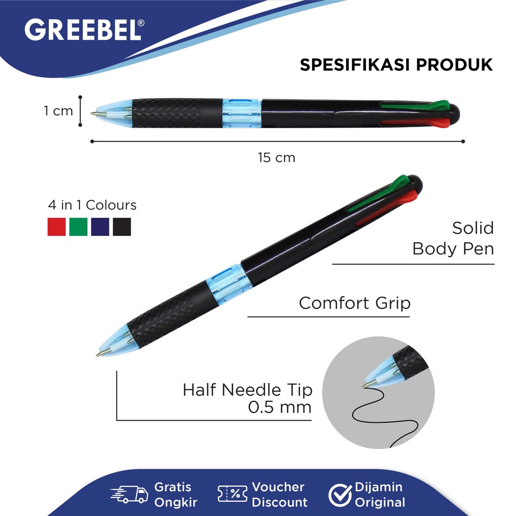 GREEBEL Pulpen 4 Warna / Bolpen Royale (12PCS/SET) / Ballpen Bolpoin Pen Gel