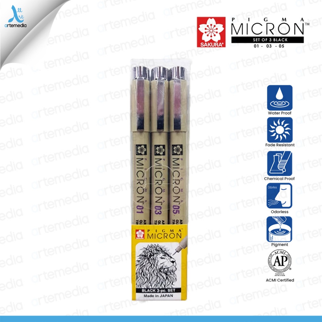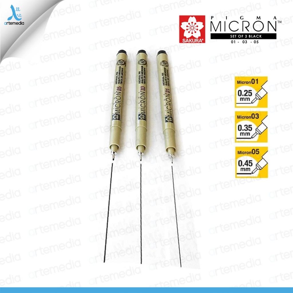 Sakura Pigma Micron Drawing Pen Set 3 Pigment Ink