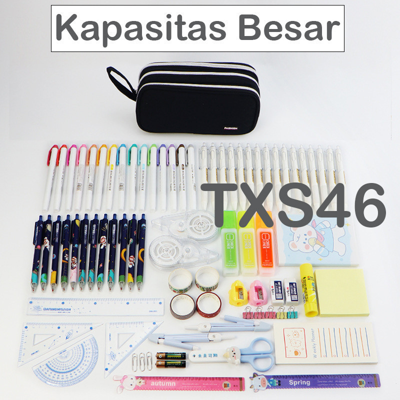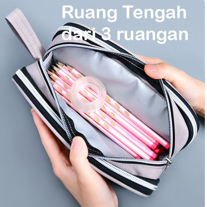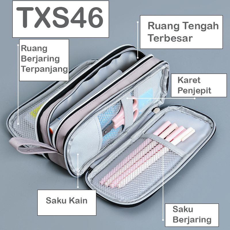 TXS46 Kotak Pensil 3 Ruang Kapasitas Besar Polos FASHION Tempat Pensil KTM