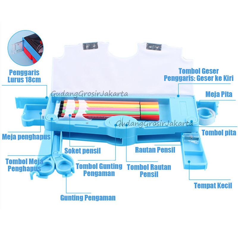Tempat Pensil Karakter Anak Laki Laki Multifungsi Kotak Pensil Magnet Tombol Rautan Pencil Case