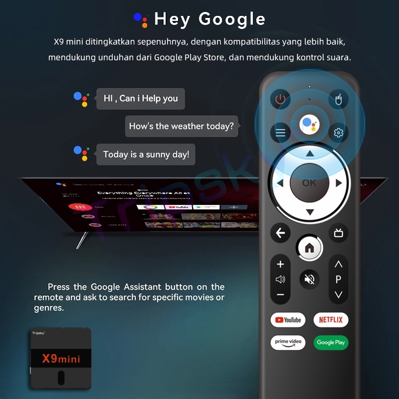 Tripsky X9mini Android Tv Box Ram 2gb Rom 16gb Bluetooth Tv Box Android 9 Support 4K Smart Tv Box