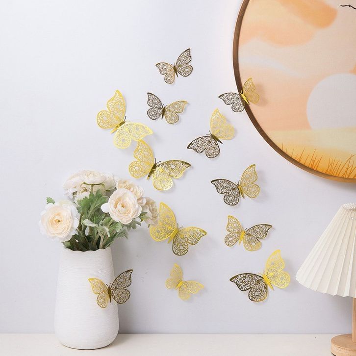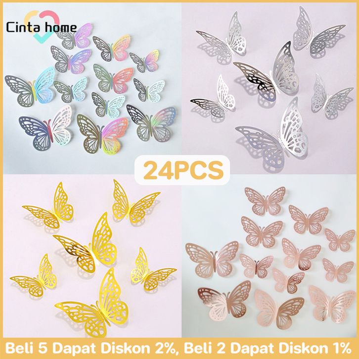 24PCS Stiker Dinding Kupu-Kupu 3D / Kupu Kupu Hiasan Dinding / Dekorasi Kamar Tidur Murah
