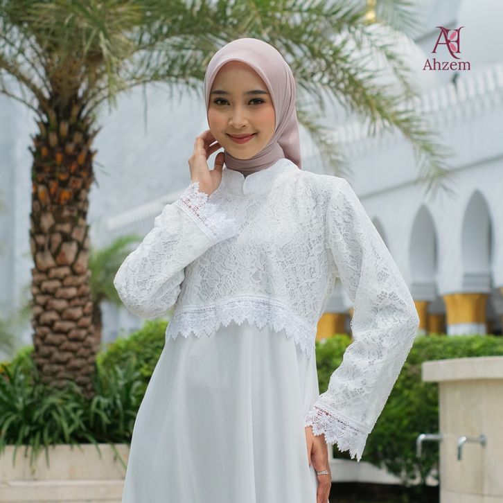 Ahzem Official - Gamis Dress Jumbo Brokat Ceruty Lebaran Medina Premium Dress Kondangan Baju Wanita Haji Umroh Busana M