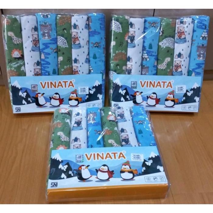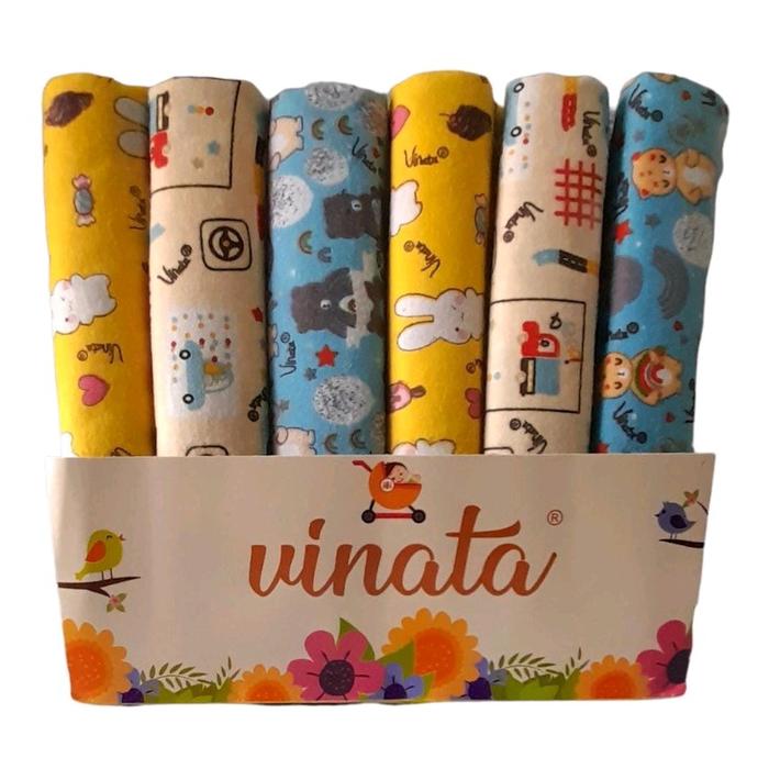 VINATA 6 Pcs Bedong Bayi Flanel Motif Print Ukuran 110x90 Besar/Kain Bedong Alas